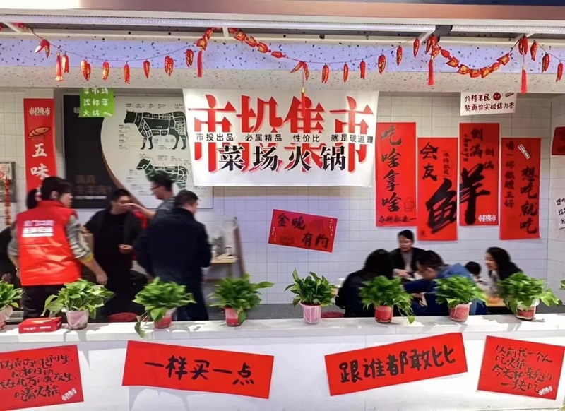 為全方位滿足廣大顧客菜市場吃火鍋體驗需求,市投集市未來路市場設立火鍋專區(qū),引入火鍋品類商戶,現(xiàn)有商戶全員參加,免費提供火鍋鍋底和餐具,顧客可根據(jù)個人喜好進行搭配和調(diào)整,創(chuàng)造出豐富多樣的火鍋料理。